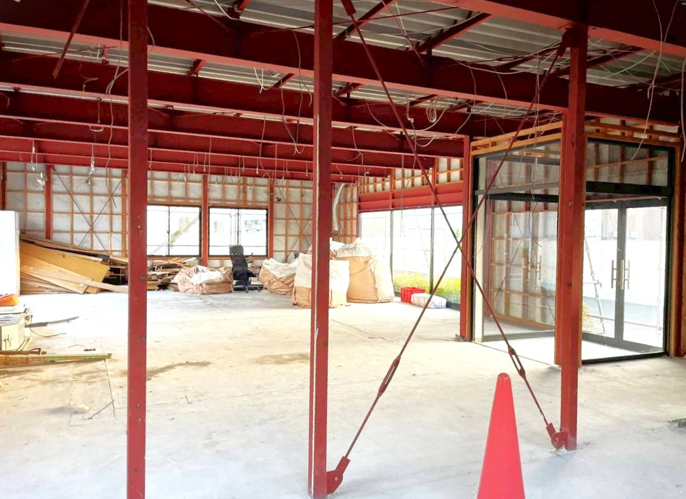 まずは室内の天井材・壁材などを撤去し、建物内部を整理。構造体を確認しながら、次工程へスムーズに移行できる状態を整えました。